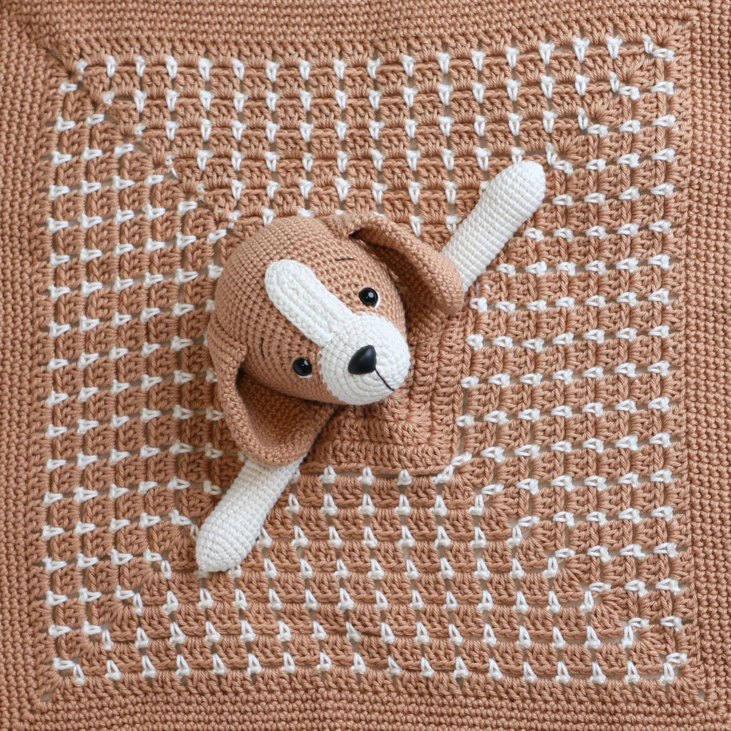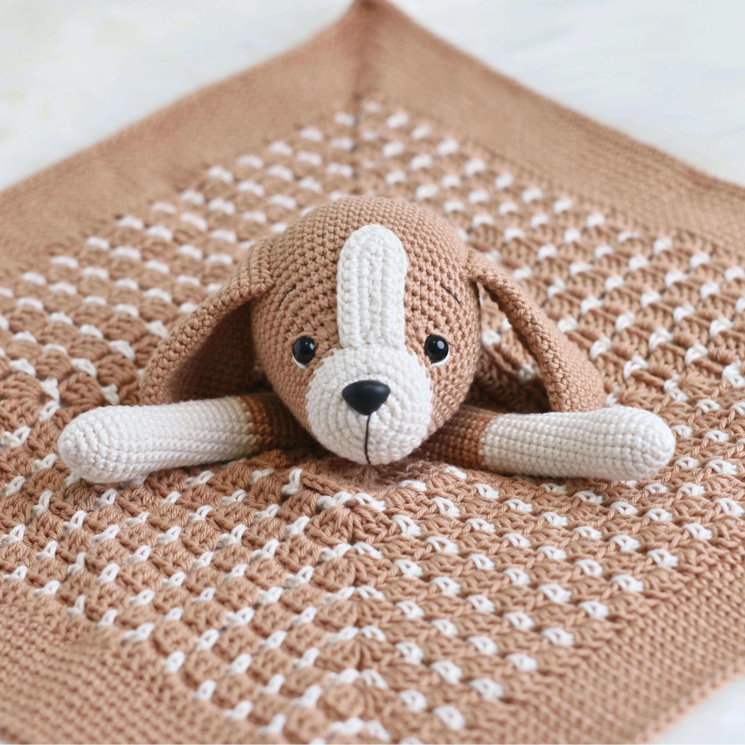 Make a sweet and snuggly puppy lovey with this beginner friendly crochet pattern. Perfect for baby showers, newborn gifts, or nursery décor, this PDF crochet pattern includes clear, step-by-step instructions and helpful photos to guide you through creating your own handmade Barkley Beagle lovey blanket.