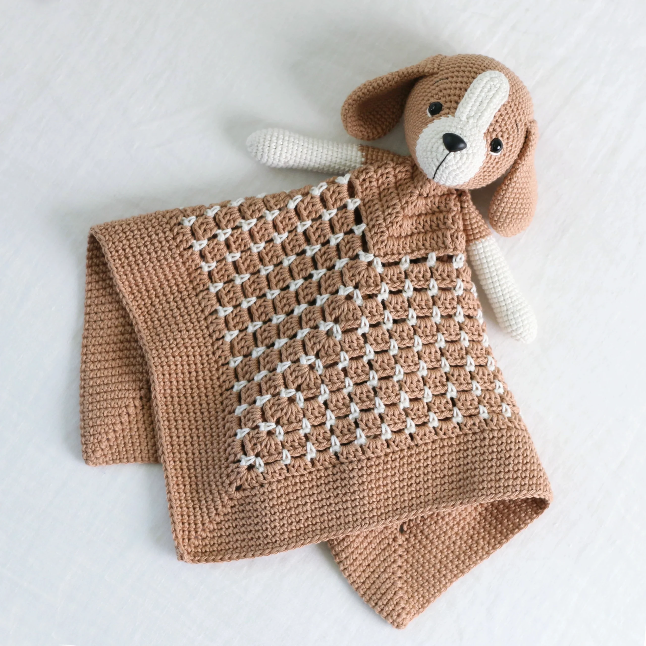 This adorable puppy security blanket is a comforting companion for little ones and a beautiful keepsake made with love. Suitable for advanced beginners to intermediate crocheters.