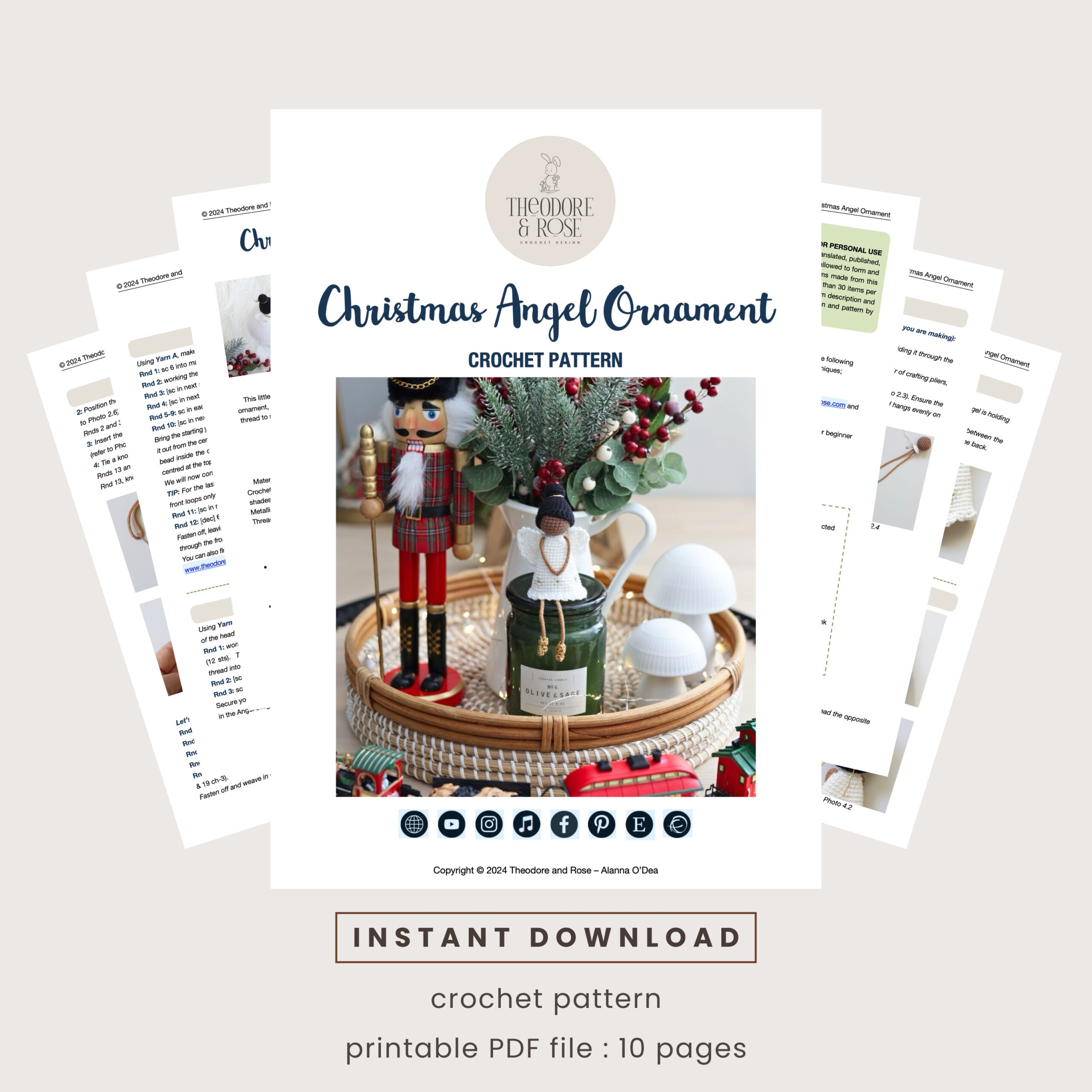 All elements comprising the pattern, designs, and images contained within this document are the exclusive property of Theodore and Rose. Any reproduction, distribution, or transfer to any third party is strictly prohibited. This pattern is intended solely for personal use. Handcrafted items created using this pattern are permissible for sale, provided that appropriate credit is given to the creator – Theodore and Rose Copyright 2025.
