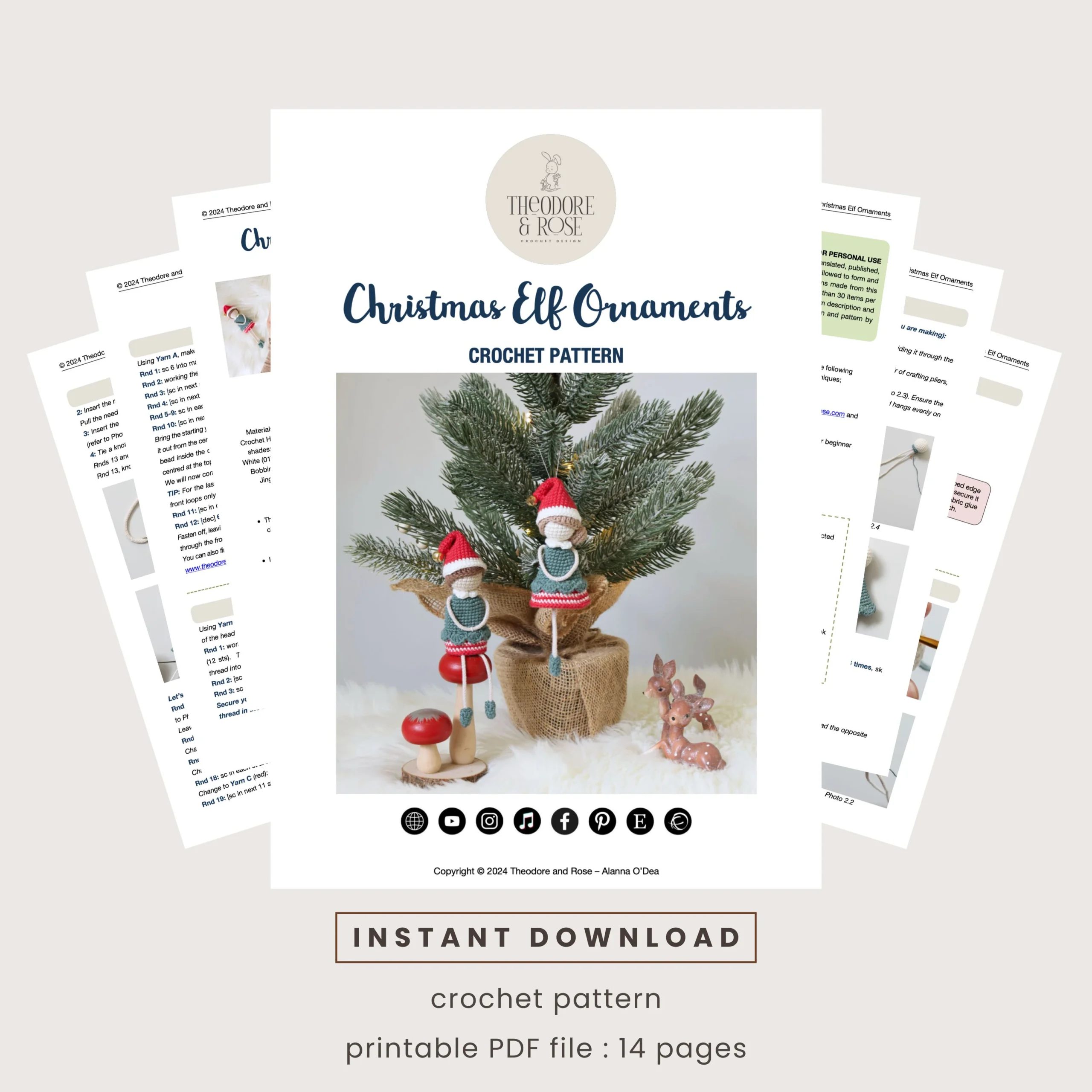 All elements comprising the pattern, designs, and images contained within this document are the exclusive property of Theodore and Rose. Any reproduction, distribution, or transfer to any third party is strictly prohibited. This pattern is intended solely for personal use. Handcrafted items created using this pattern are permissible for sale, provided that appropriate credit is given to the creator – Theodore and Rose Copyright 2025.