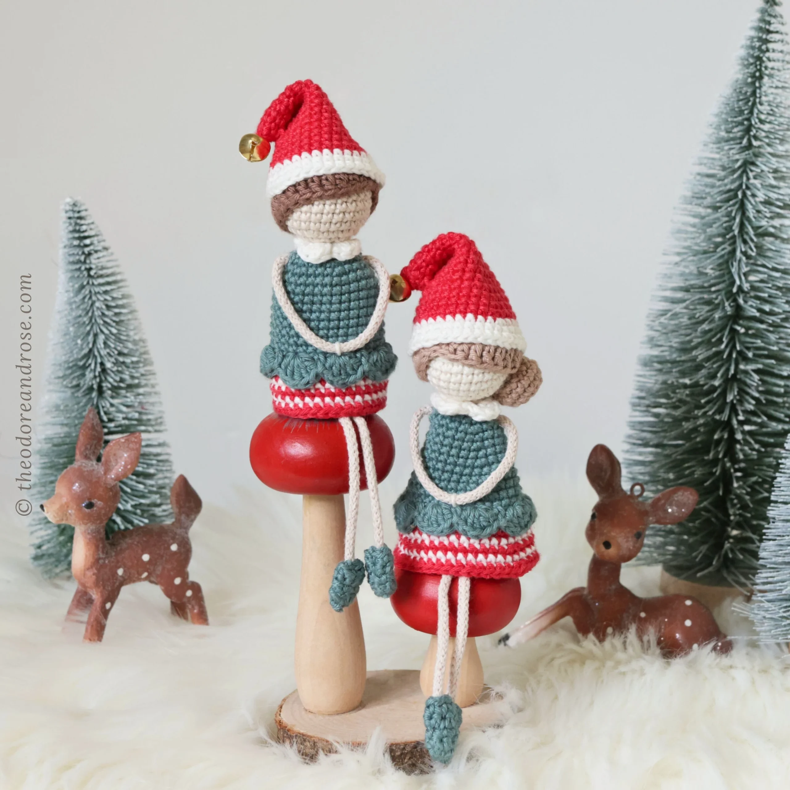 These little Christmas Elves has been designed to be versatile piece – they can serve as a hanging ornament, a festive décor piece for your mantle, or even as a tree topper. Simply add a hanging thread to make them an ornament, leave the thread off for mantle display, or skip both the thread and legs to create a sweet little tree topper.