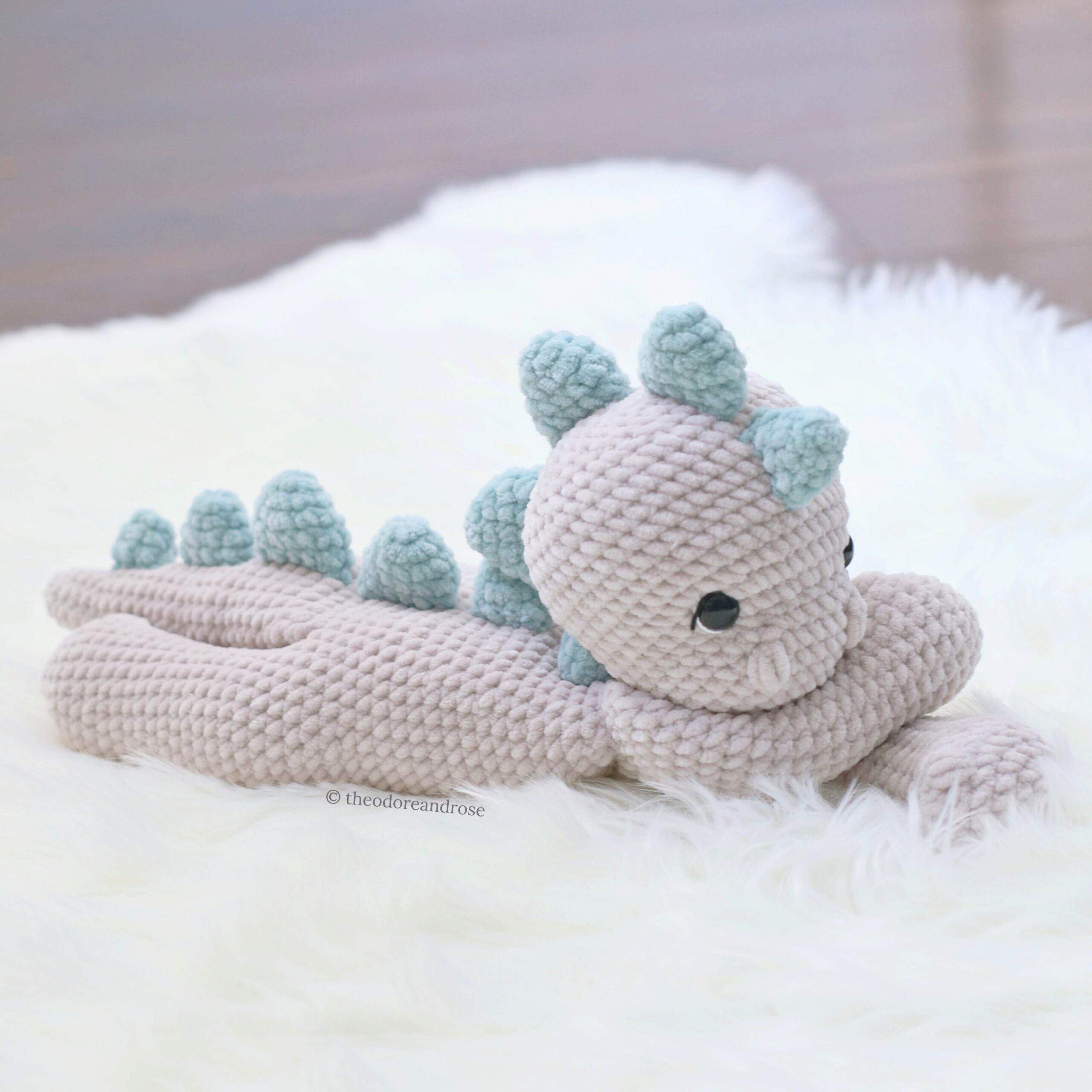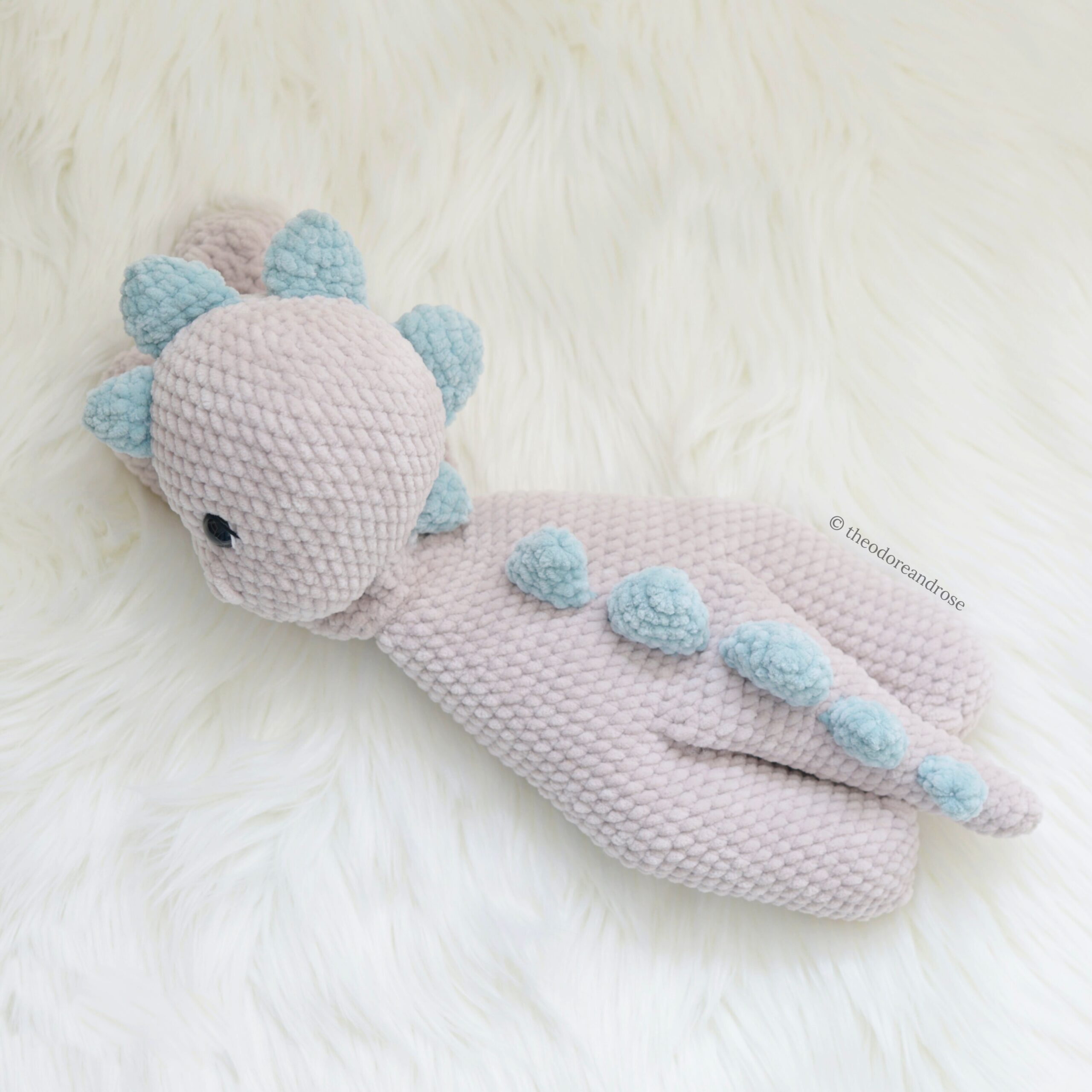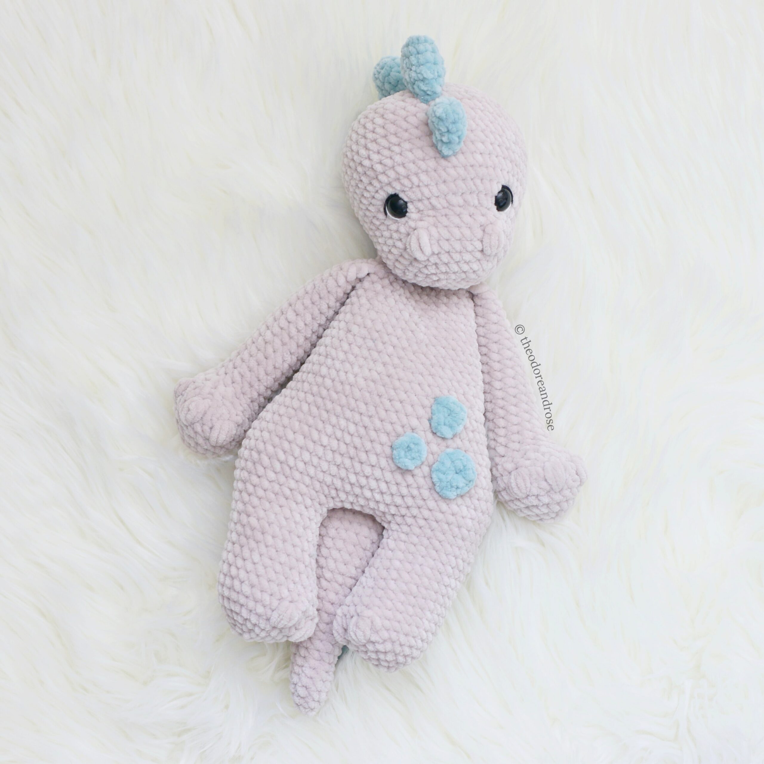 Download the Dinosaur Plushie Lovey pattern and crochet your own adorable plushie today!
