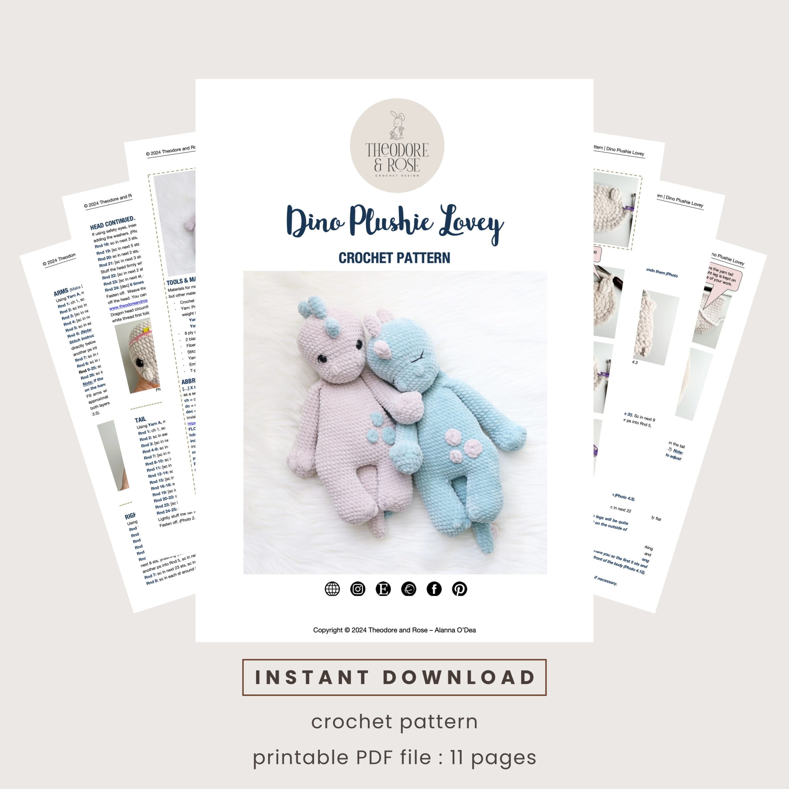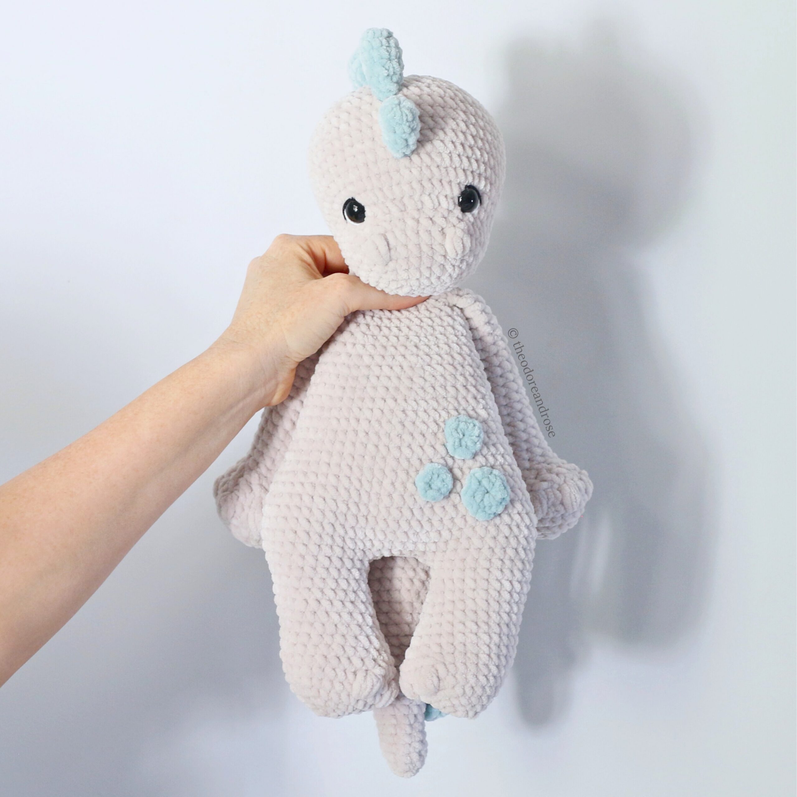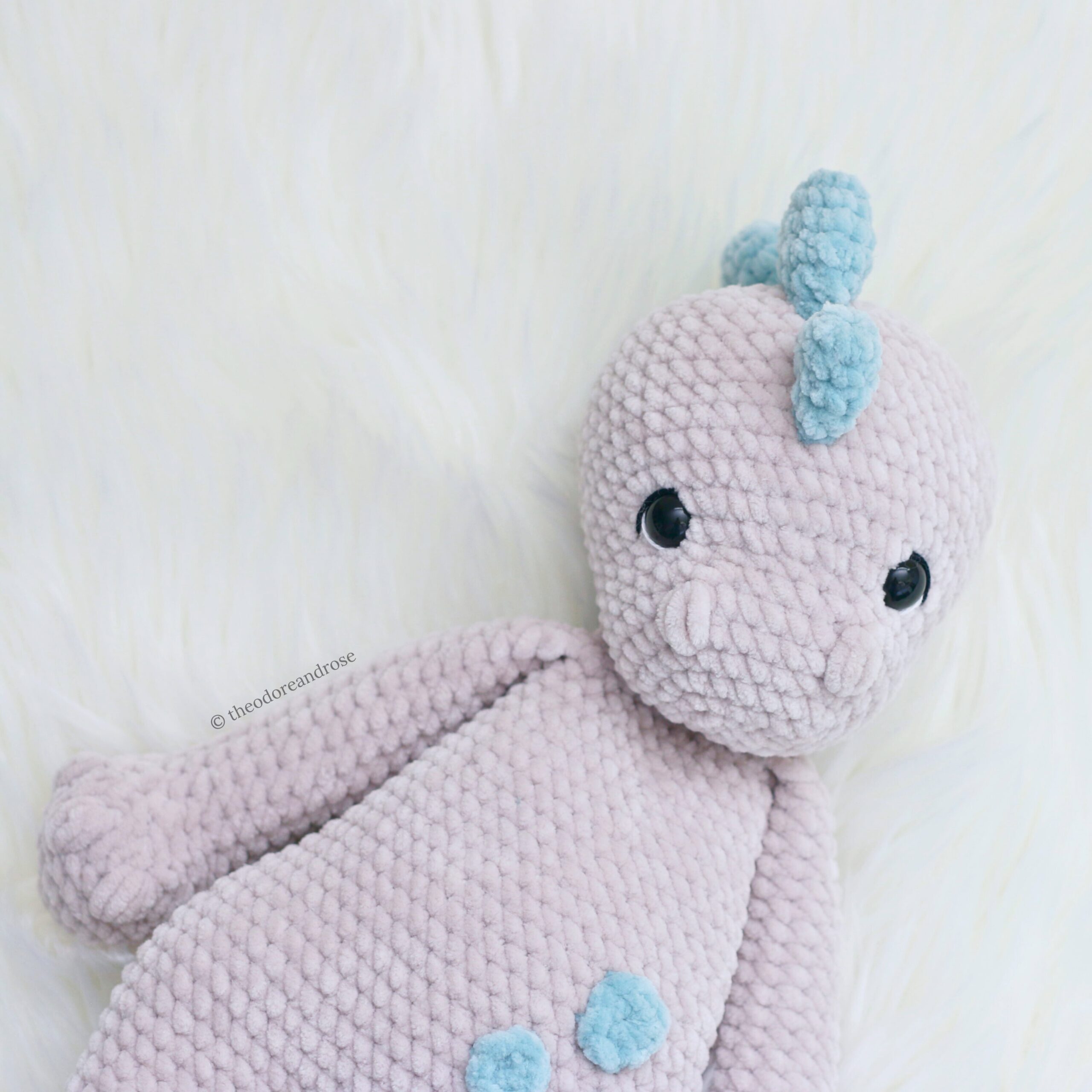 Download the Dinosaur Plushie Lovey pattern and crochet your own adorable plushie today!