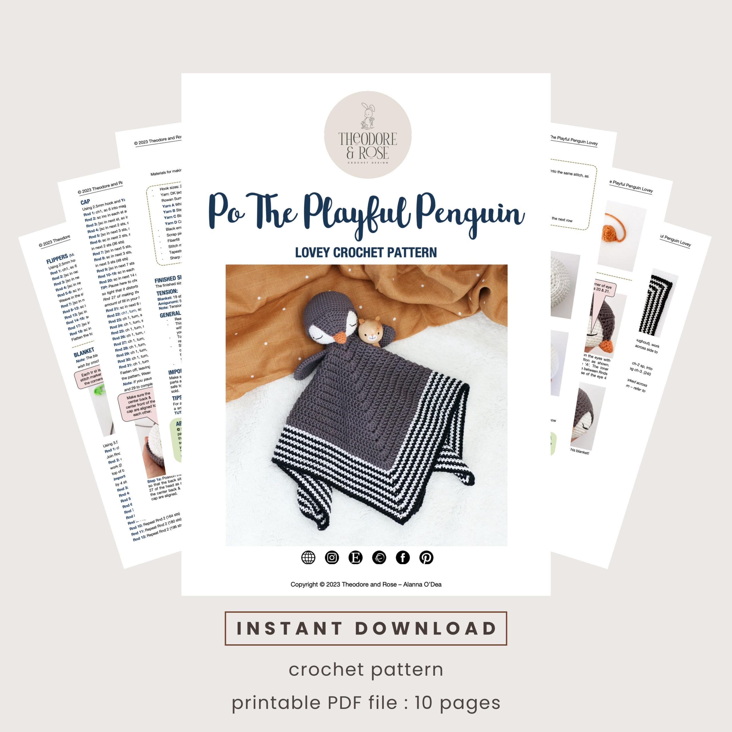 Create your own adorable penguin lovey with this beginner-friendly crochet pattern! Po The Playful Penguin features a sweet penguin head attached to a lovely, cuddly blanket – perfectly sized for little hands to snuggle.