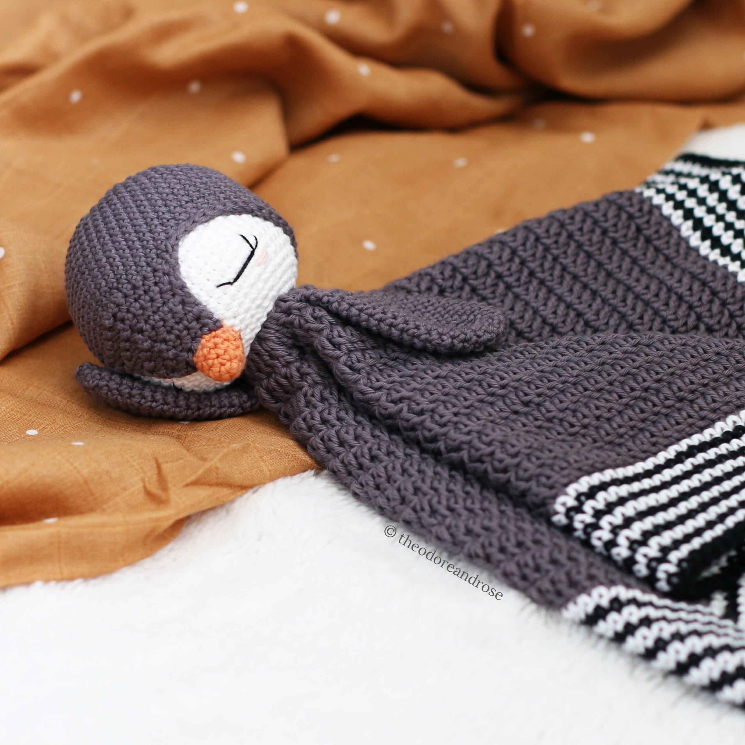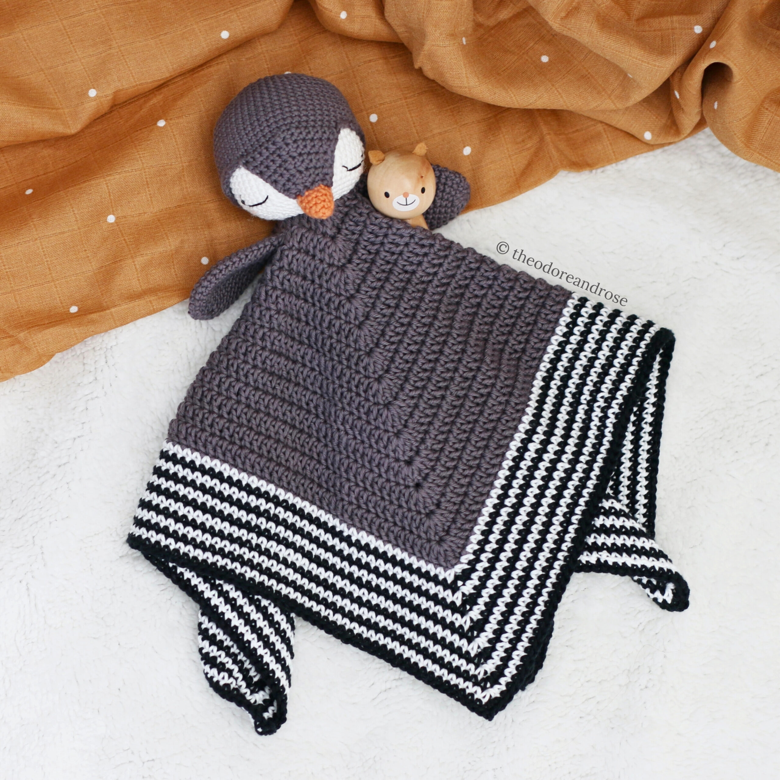 This loveable penguin security blanket makes a thoughtful handmade gift for baby showers, newborns, toddlers, or a cherished addition to any nursery décor.