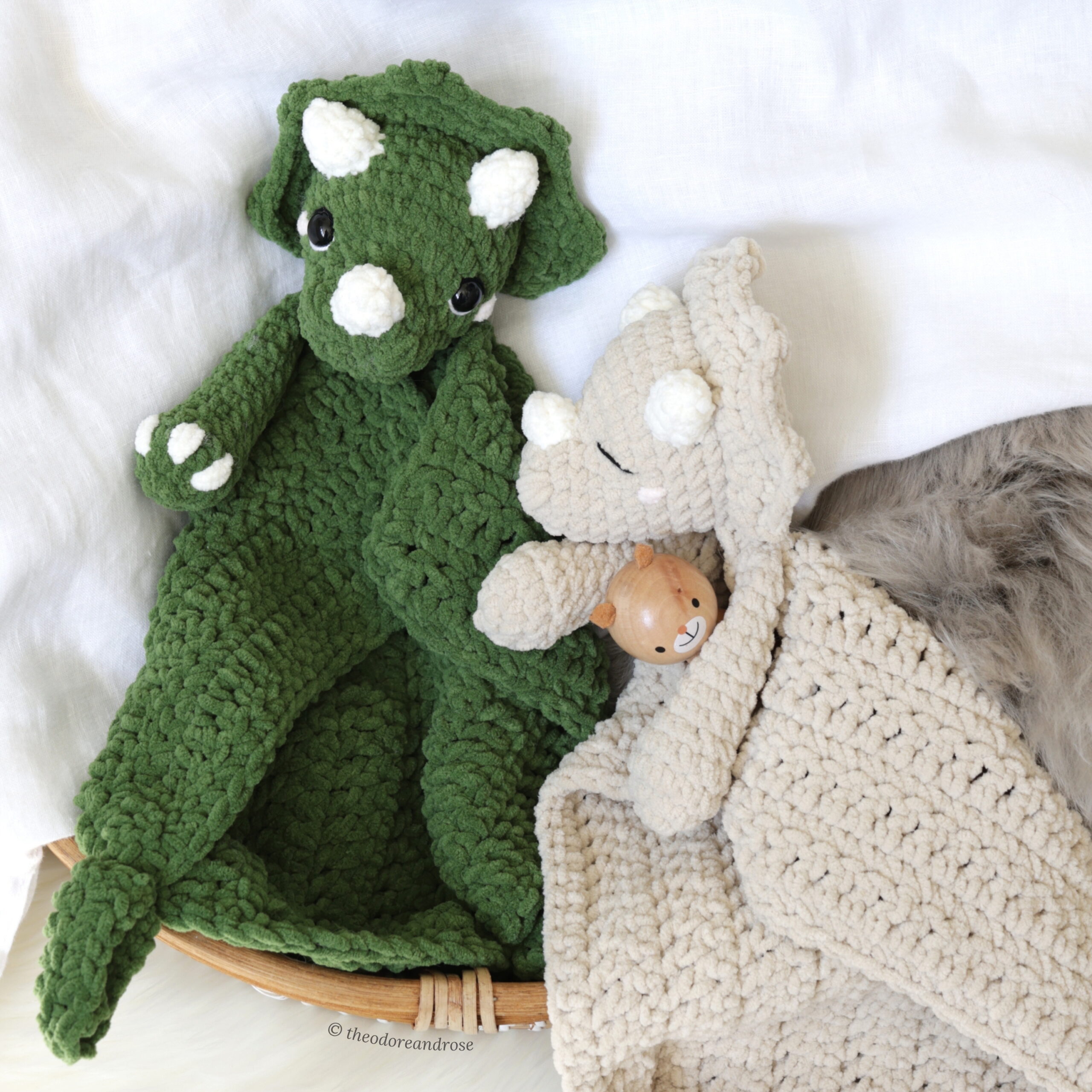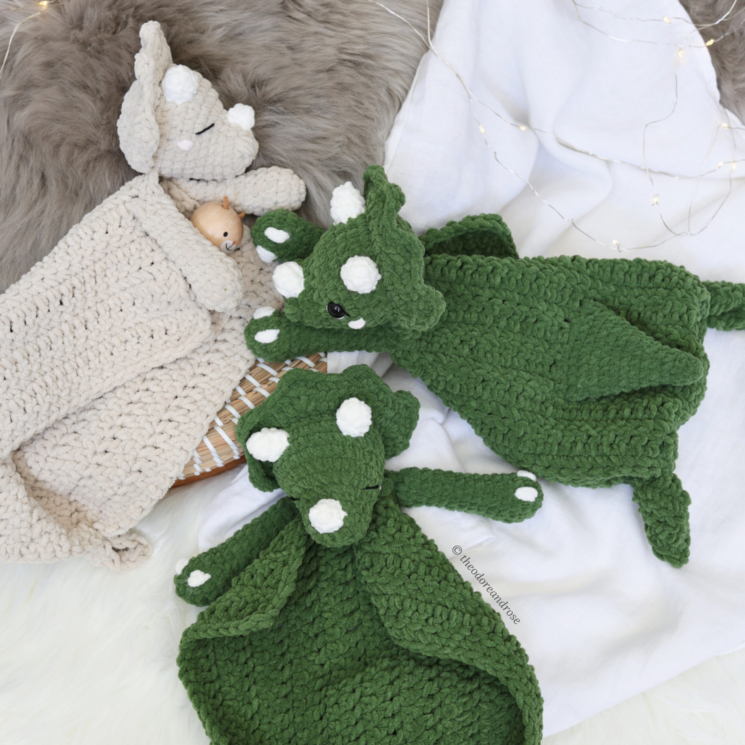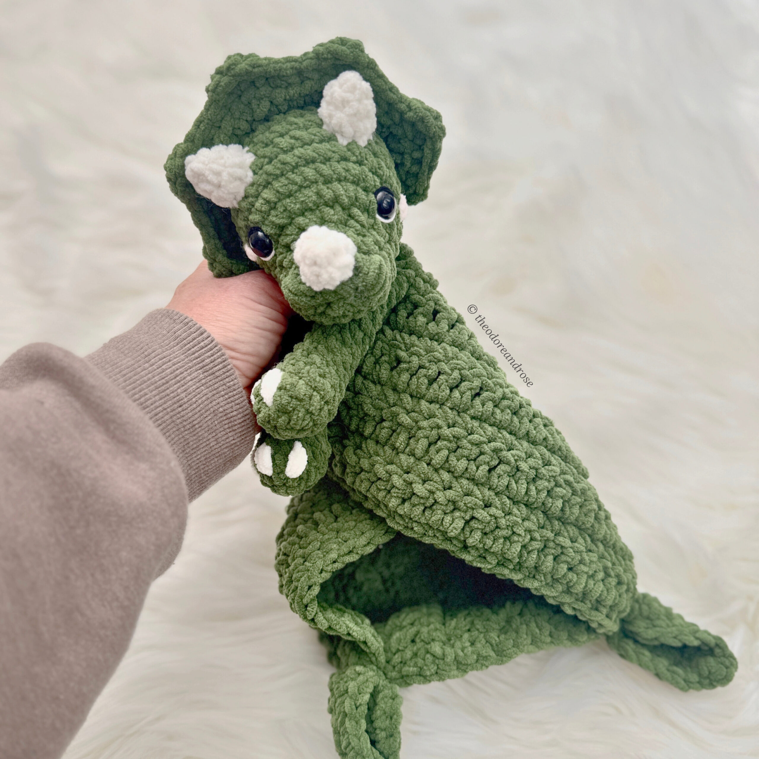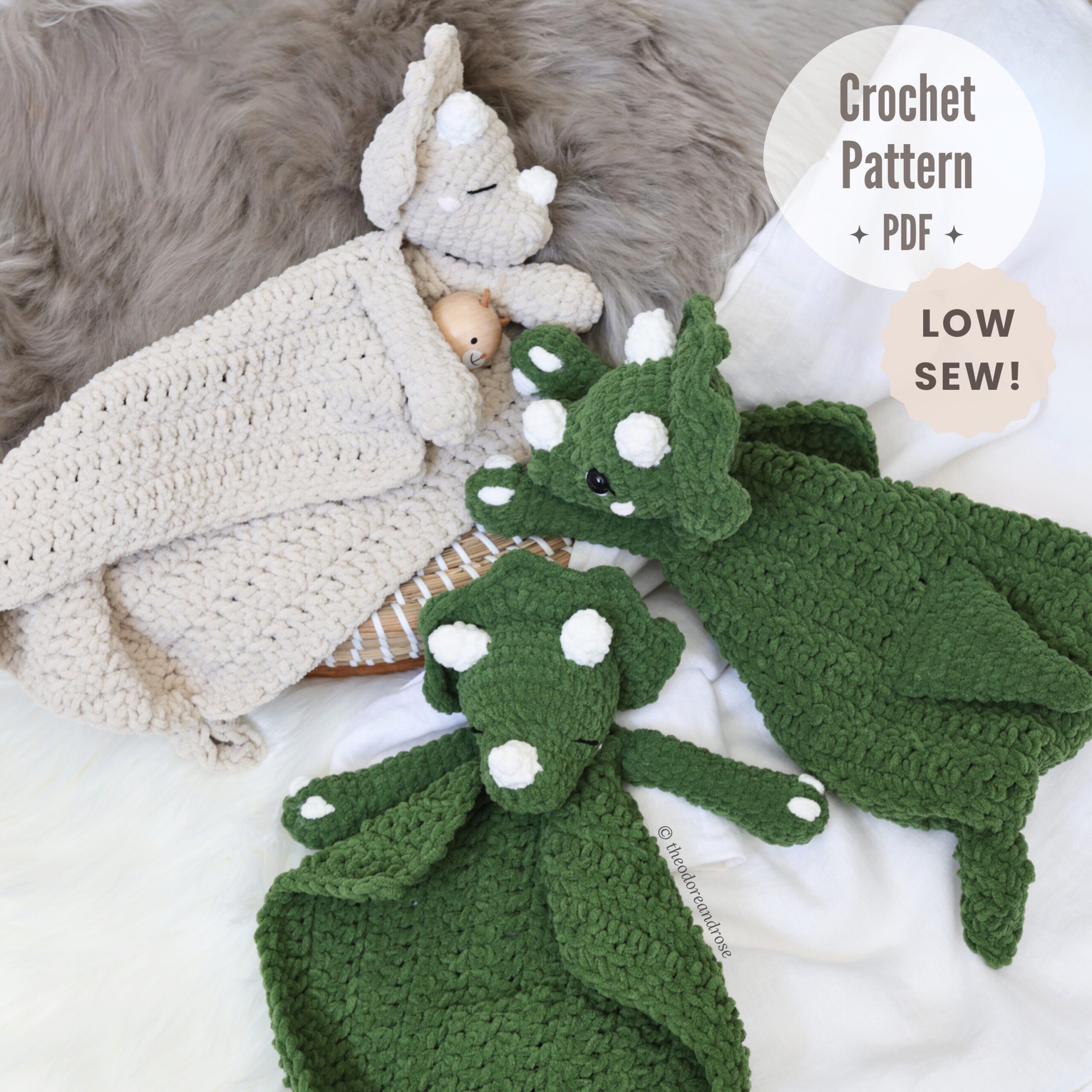 Create a snuggly prehistoric friend today with Sera the Triceratops Lovey Crochet Pattern! Perfect for baby showers, nursery décor, or craft market products.